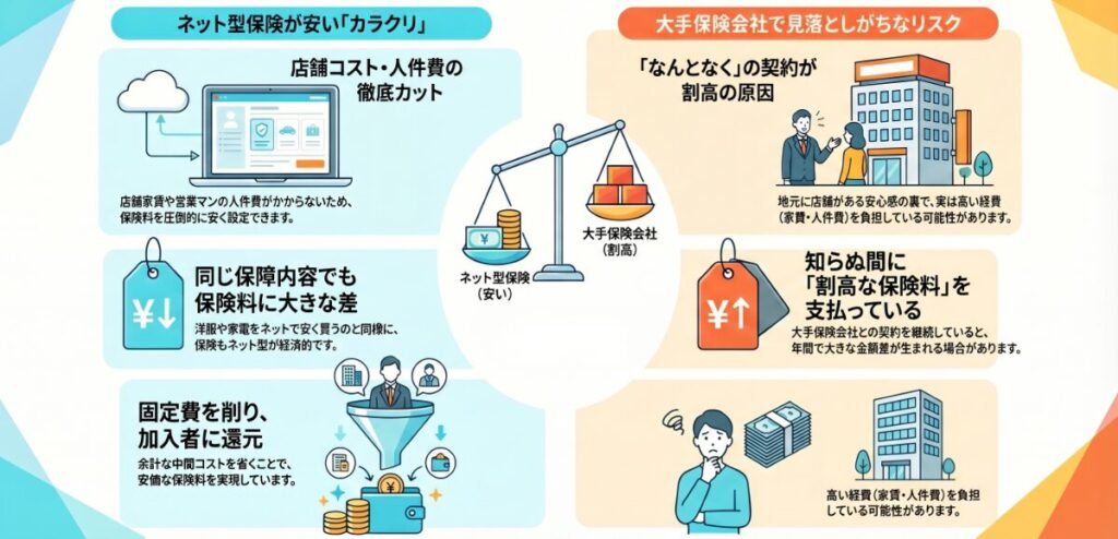 洋服や家電は店舗よりネットで買ったほうが安いことがありますよね。 実は保険にも同じように「ネット型の保険」があります。