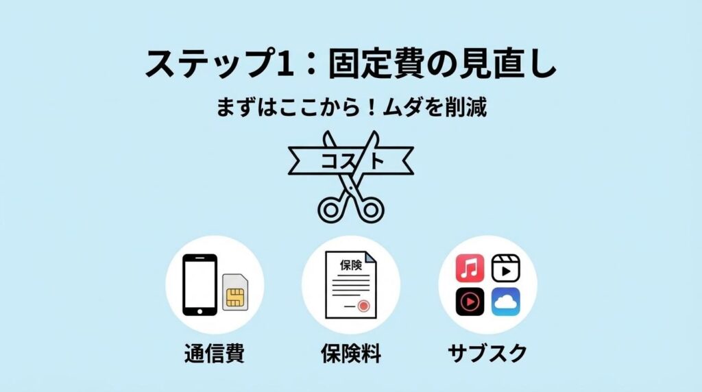 固定費削減のより詳しいステップは、別の記事で解説しているので参考にしてください。