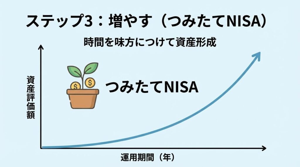 支出を減らし、収入を増やしたあとは、つみたてNISA(投資)でお金を増やします。