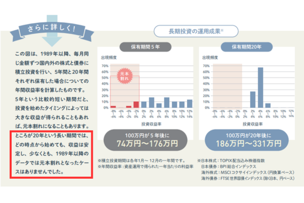 つみたてNISAは、15年以上の長期で積み立てることで、高確率で資産を増やせます。
